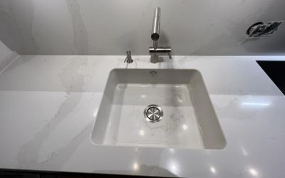 Arbeitsplatte aus Dekton " Neural", 2cm massiv mit flächenbündiger Spüle