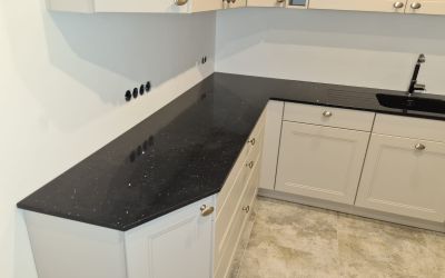 Arbeitsplatten und Wange aus Silestone "Negro Stellar", Oberfläche poliert, 2cm stark