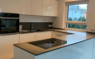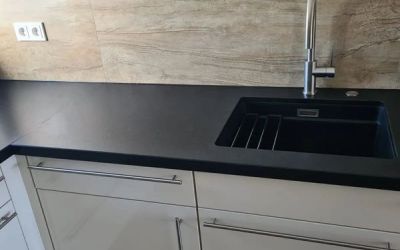 Arbeitsplatten und Wandanschlußprofil aus Naturstein "Nero Assoluto", Oberfläche satiniert, 3cm massiv.