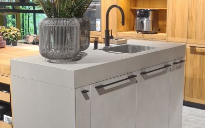Eine Küchenarbeitsplatte aus Dekton KIRA bringt nicht nur zeitlose Eleganz, sondern auch extreme Strapazierfähigkeit in die Küche. Mit einer Stärke von 2cm wird diese Arbeitsfläche zum Blickfang.
