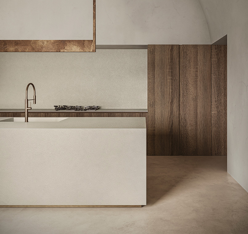 Das Ergebnis: Oberflächen, die technische Raffinesse und elegante Schlichtheit perfekt vereinen - mit präzisen Strukturen und cleveren Lösungen, die das Material auf eine ganz neue Weise erlebbar machen.