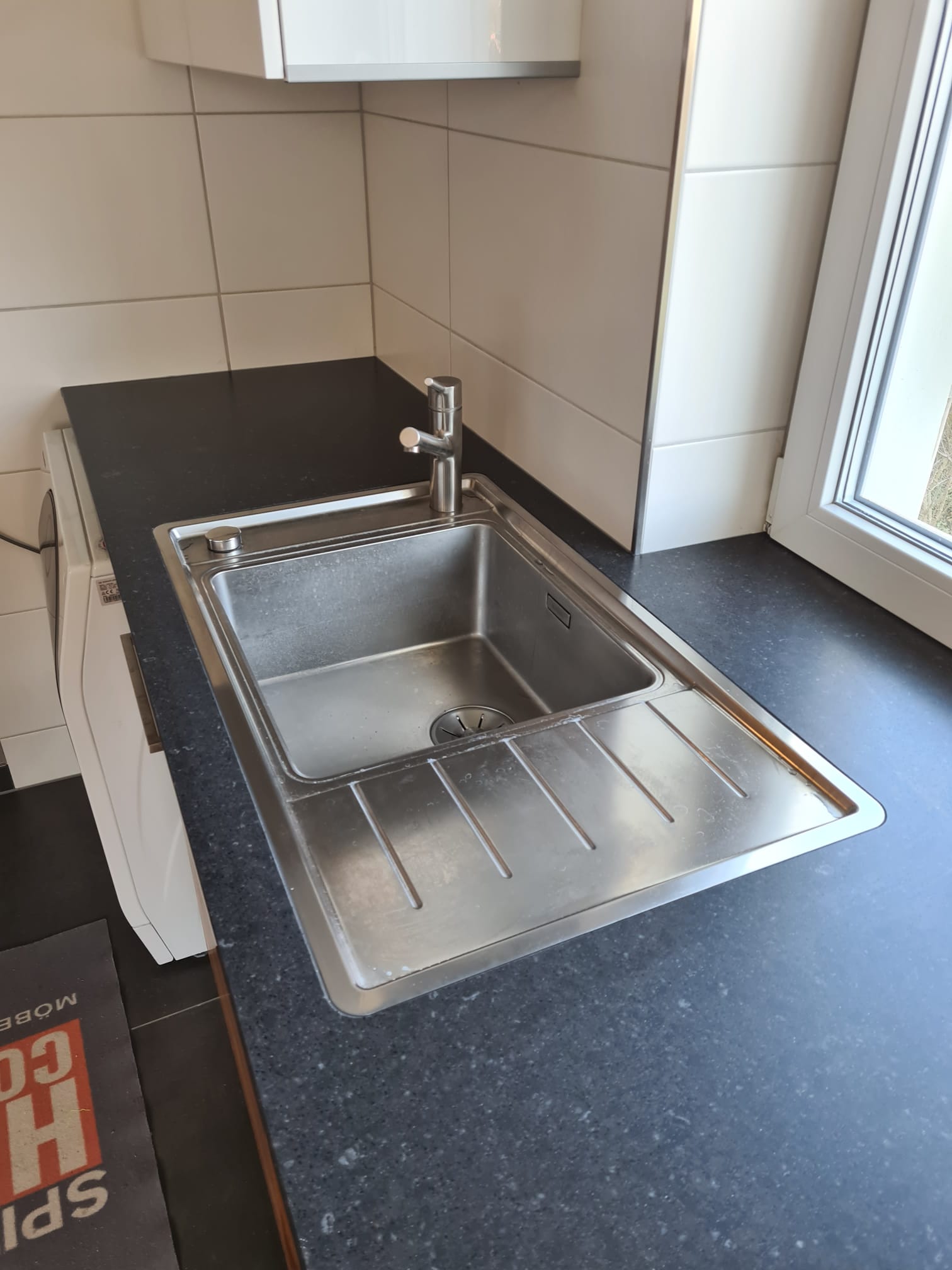 Arbeitsplatten und Wandanschlußprofil aus Silestone "Arden Blue", 2cm suede (matt), Kochfeld Auflage und Spüle flächenbündig